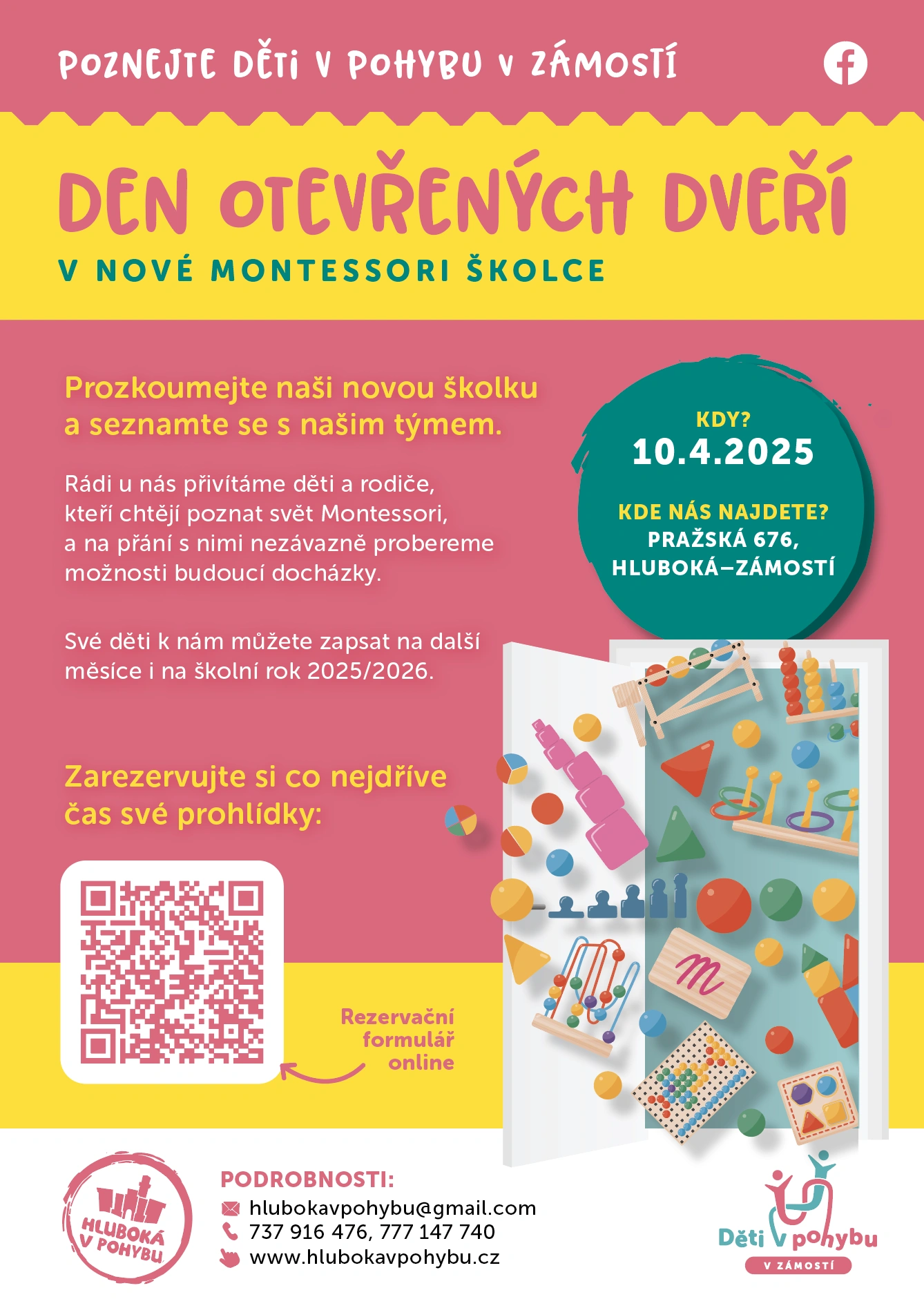 Rádi u nás přivítáme děti a rodiče, kteří chtějí poznat svět Montessori, a na přání s nimi nezávazně probereme možnosti budoucí docházky. Své děti k nám můžete zapsat na další měsíce i na školní rok 2025/2026.