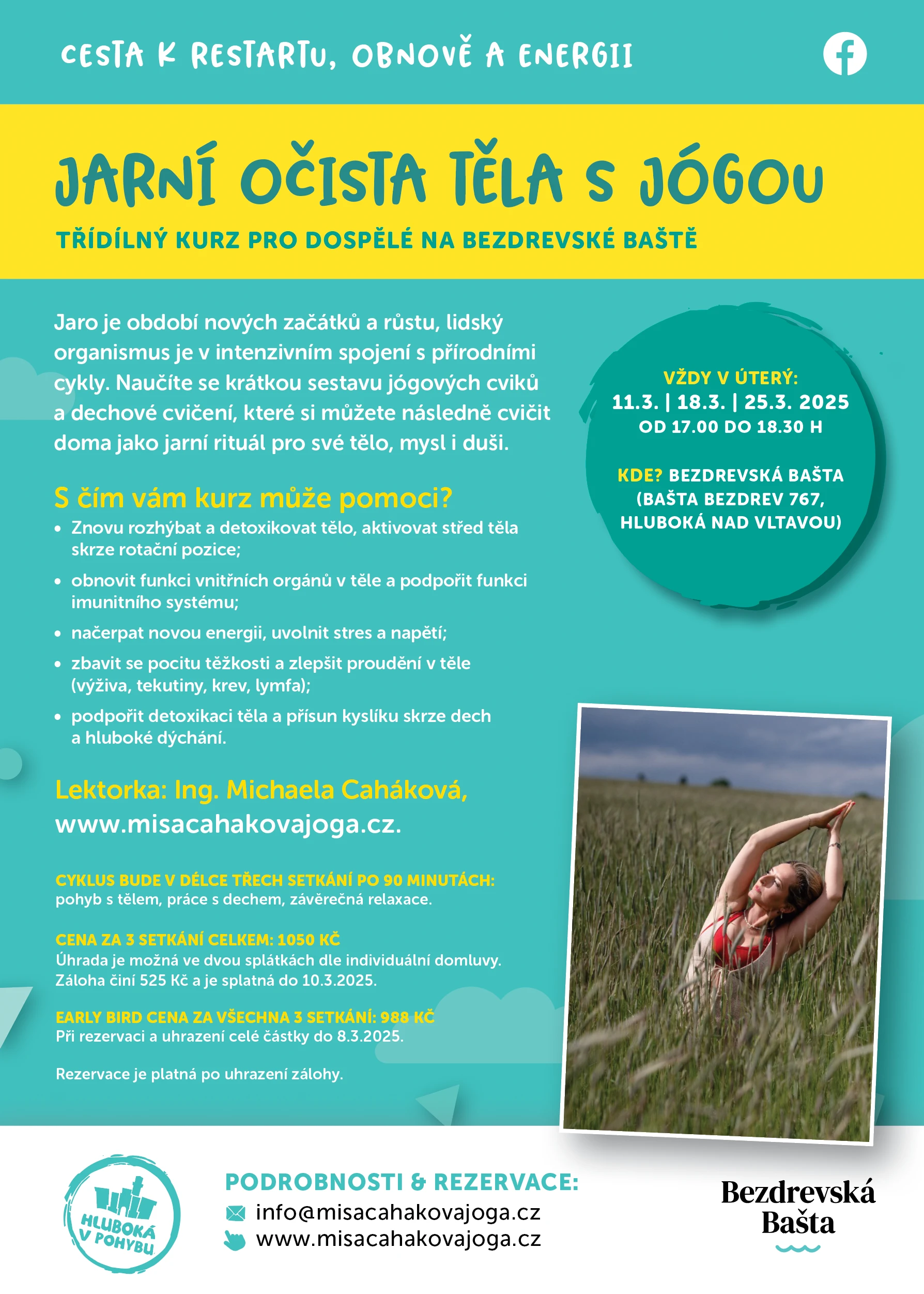 Jaro je období nových začátků a růstu. Lidský organismus je v intenzivním spojení s přírodními cykly. Naučíte se krátkou sestavu jógových pozic a dechových technik, které můžete následně praktikovat doma jako jarní rituál pro své tělo, mysl i duši.