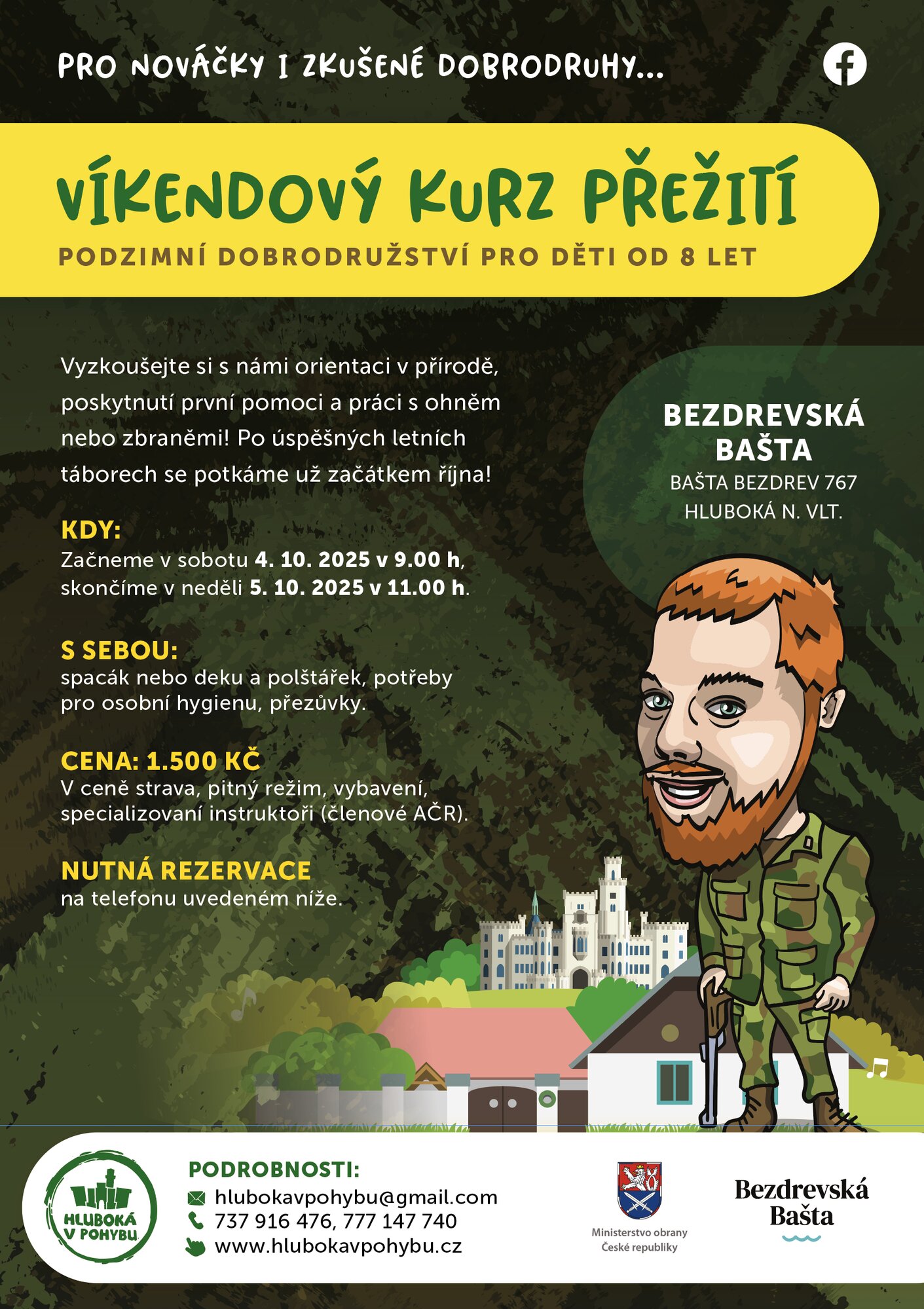 Tábo­ry a kur­zy ve spo­lu­prá­ci s Armá­dou ČR jsou již něko­lik let vyhle­dá­va­ným láka­dlem. Za pod­po­ry Minis­ter­stva obra­ny ČR při­pra­vu­je­me pod­zim­ní kurz pře­ži­tí pro děti od 8 let – akč­ní pro­gram, ve kte­rém si mla­dí účast­ní­ci vyzkou­ší ori­en­ta­ci v pří­ro­dě, roz­dě­lá­vá­ní ohně, stav­bu úkry­tu, prá­ci se cvič­nou zbra­ní, zákla­dy prv­ní pomo­ci i týmo­vou spolupráci.