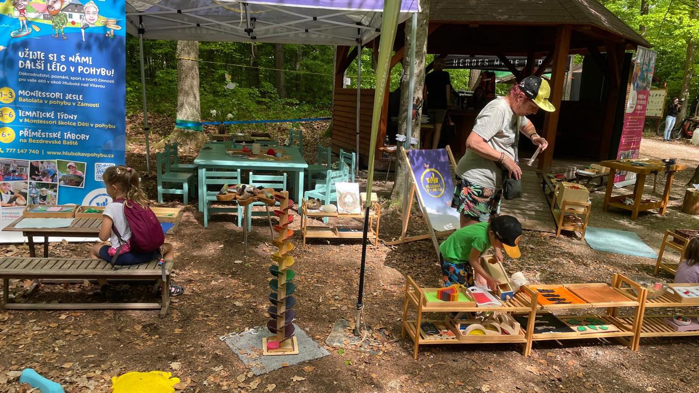 Sou­čás­tí udá­los­ti byl opět tým Děti v pohy­bu, kte­rý pro malé účast­ní­ky při­pra­vil ukáz­ky spor­tov­ních akti­vit i prak­tic­kých Mon­tes­so­ri pomů­cek. Děti si moh­ly vše vyzkou­šet na vlast­ní kůži, obje­vo­vat nové doved­nos­ti, zapo­jit se do pohy­bo­vých úko­lů a záro­veň se nená­pad­ně učit o pří­ro­dě, lese i okol­ním prostředí.